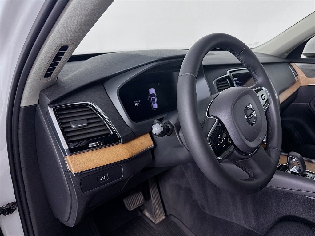 Recent Arrival! 2024 Volvo XC90 B6 Plus Bright Theme 6-Seater in Crystal White with interior in Black Full Leather. Beautiful 1-owner local trade with 23,000 miles. Well equipped Plus Package includes surround view system, heated front and rear seats and heated steering wheel, plus the optional Harman/Kardon surround audio system, 21" alloy wheel upgrade and more!