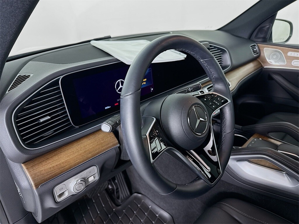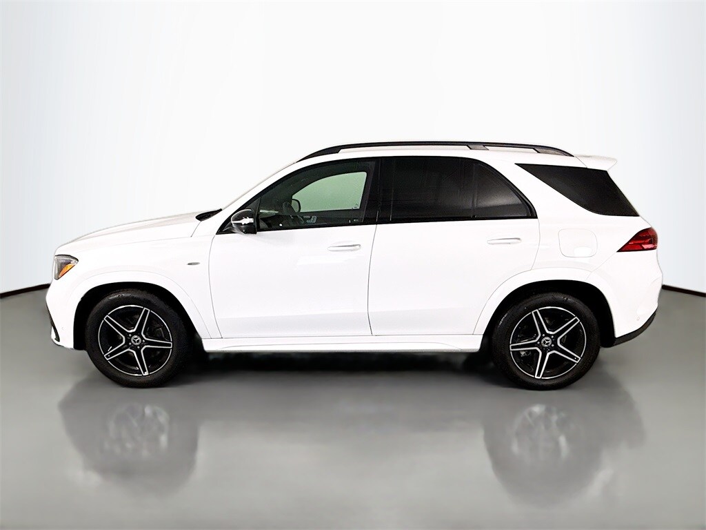 2025 Mercedes-Benz GLE 450e 4MATIC plug-in hybrid SUV with AMG Line Package. 1-owner lease return with just 4,500 miles. Well equipped including the Driver Assistance Package, dual panel Panoramic moonroof, Night Package and rear roof spoiler and more.